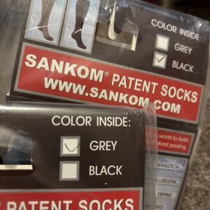 1 Grey, 1 Blk Sankom Patent Socks Improves Blood Circulation Switzerland Plus III 2 Pairs, 1 black and one Grey >>Ships in a plastic bag surrounding the box