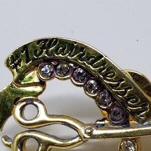 #1 Hairdresser Pin Scissors Stylist Hair Dresser Jewelry Gold tone Tie Clip Avon