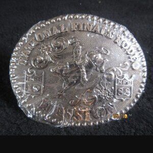 1 Hesston Vintage Rodeo Belt Buckle 1988 METAL Original Wrap National Finals 4x3