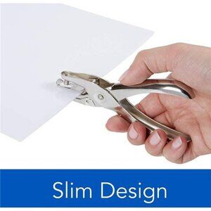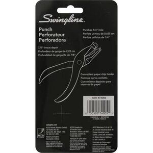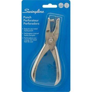 The Swingline 1-Hole Punch provides reliable punching wherever you need it. The solid metal punch is built for durability. With a smooth, slim handle and a classic plier design, it easily punches a 1/4” hole through as many as 5 sheets of paper. A built-in compartment holds punched paper chips to reduce mess. When it's full, simply open it over a waste paper basket or garbage bin to empty it. Pocket-sized, all-metal chrome punch is small enough to tote into the classroom or office and is durable enough to withstand whatever you throw at it. Built strong for long-term use.