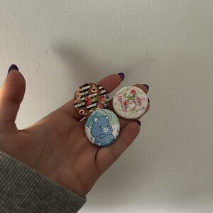 1 Inch 3 Care Bear Pins Button Brooch Grumpy Bear Cheer Bear