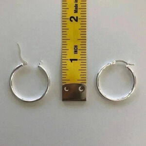 2 mm thickness, 1 inch diameter solid 925 sterling silver medium hoop earrings. Bundle and save. I ship fast!