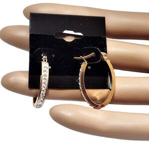 1 Inch Long Crystal Channel Hoops Gold Tone 25mm Pierced Oval