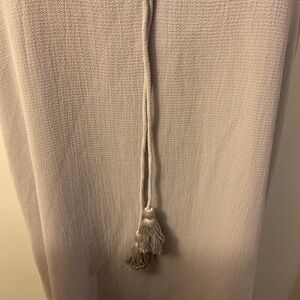 This is a Joy Joy light grey sleeveless A-line short dress in size M. The dress features a V-neckline, tasseled accents, and is made of polyester material. It is suitable for various occasions such as travel, parties, and casual wear. The dress has a solid pattern, is lined, and is designed with a beach, baby shower, bohemian, classic, and 90s theme. Perfect for winter, summer, fall, and spring seasons, this dress offers a stylish and versatile option for women looking for a chic and comfortable outfit.