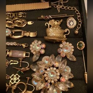 1 LB Vtg costume Jewelry Lot~ HIGH END Silver Gold, Pearls, Rhinestones Bling