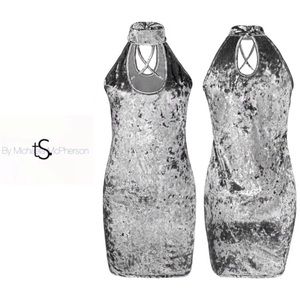 NEW • \\tRINITY Squared•// Choker Velvet crush bodycon mini dress ::: Criss cross neck ::: Soft + supple for winter///all seasons ::: Available in Silver ::: Size [S] :: New with tags•