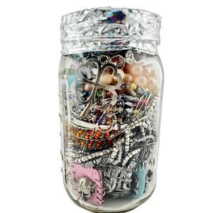 1 Lb 12 oz Jewelry Jar Silver Tone Vintage Modern Bracelets Necklaces Earrings