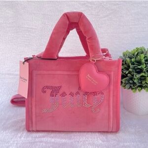 Brand new Betsey Johnson faux leather purple large tote handbag. The pattern on the purple faux leather purse is sugar skulls, roses, flower designs and crowns embossed in the material throughout the bag. Double purple handles and purple faux leather shoulder strap which is removable. The purse says BETSEY JOHNSON on a metal plaque on the back bottom middle. The front has a purple heart purse charm keychain with a skull. Has a row of small purple skulls lining either side of the front of the purse. Purse measures 15” across, 13” tall, 6” depth.