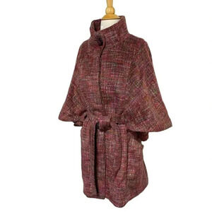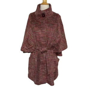 1 Madison 12 pink tweed wool blend belted cape jacket