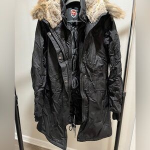 1 Madison Expedition Heritage Collection Woman Black Parka Hooded Coat-Preowned