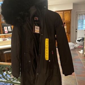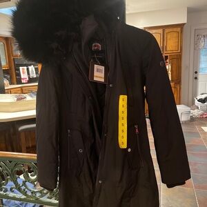 1 Madison Expedition Women's Faux Fur Trim Parka Jacket Coat Small Black brand new with tags