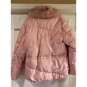 1 Madison Pink puffer jacket zipper pockets/phone pocket/fox fur-Medium