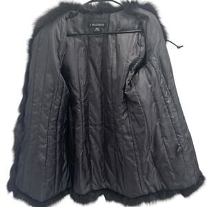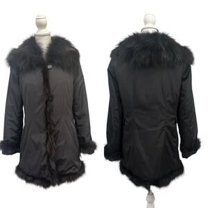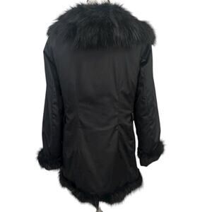1 Madison Vintage Black Afghan Penny Lane Genuine Fox Fur Trim Coat Boho Glam
