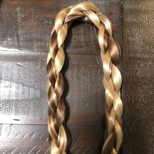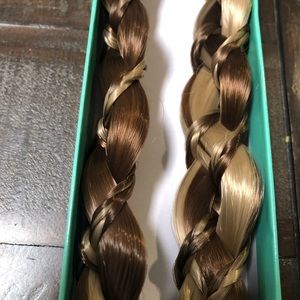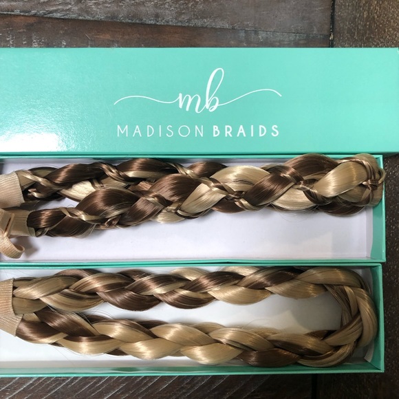 One Madison hair braids in brand new condition! Wear them like a headband or use for a fancy up do! Blonde/brunette blend. Beautiful braids.