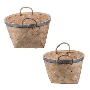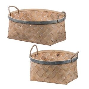 NEW A&B Home Woven Bamboo Baskets with Galvanized trim