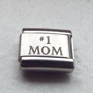 New never used 9mm stainless steel Italian charm with #1 Mom lasered on it. Fits all standard 9mm Italian charm bracelets, thanks for looking!