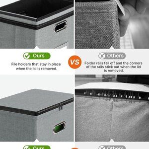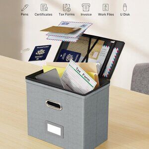 Upgraded File Boxes With Lids: The large capacity file folder organizer features 3 convenient mesh pockets on the lid, ideal for storing items such as letters, certificates, pens, calculators, passports, USB drives and more.