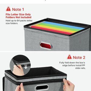 Included Components: Bottom Panel With A Small Handle*1(for 1 Pack), File Organizer Boxes With Lid*1(for 1 Pack), Pp Slide Rails*2(for 1 Pack)