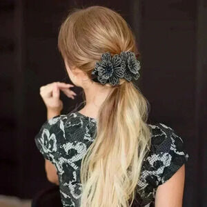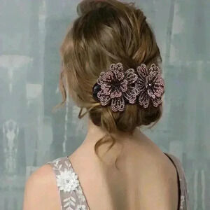 Material: Double flowers are made of non-woven fabric fully decorated with sparkly rhinestones and then attached on plastic claws. These rhinestone double flower claws are pretty, unique and comfortable for you to wear because of high quality materials.