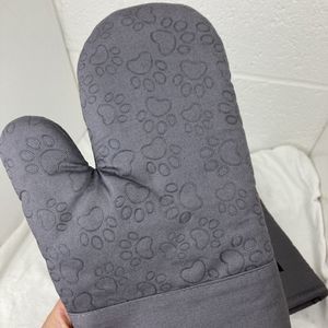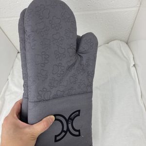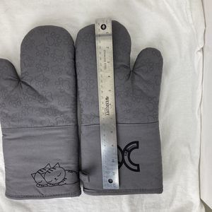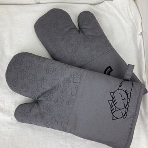 1 Pair Gray Cotton Long Silicone Paw print Cat Oven Mitts Cat Lovers Choice. Great addition to your kitchen!