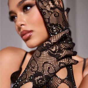 1 Pair Women's Cute, Sexy Diamond/Crystal Embellished, Lace Black Sparkly