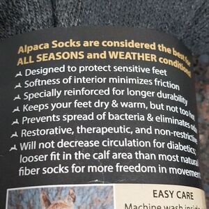 Alpaca socks are the rage for healthy feet. They are made in the USA. They are all new and in perfect condition.