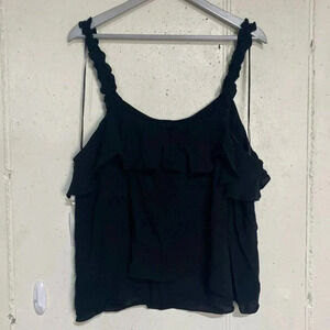 1. STATE 2X hyper tropic black sleeveless ruffled square neck top NWT