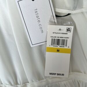 Adorable 1. State ivory color blouse with beautiful detailings. Blouse is size medium and is slightly sheer but has another layer build in so it’s not see through. Brand new with tags.
