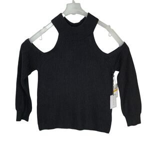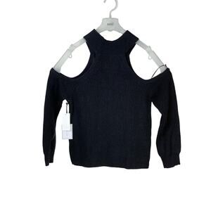 1. STATE Black Open Cold Shoulder Rib Knit Halter Neck Sweater S NWT