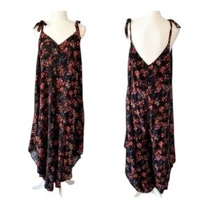 1. STATE Maroon Floral Romper Jumpsuit Boho Wide Leg Asymmetrical Hem Size Small