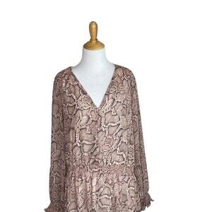 1. STATE Pink Ruffled Smocked Elastic-Waist Buttoned Snake Print Dress Sz Large