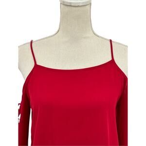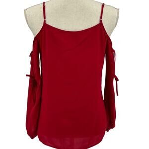 1. STATE Red Cold-Shoulder Long-Sleeve Blouse Size XS Femme Fatale