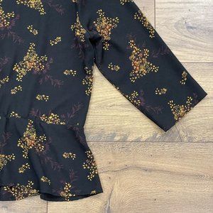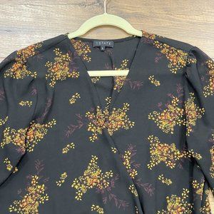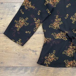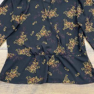1. STATE Top Womens L Wild Country Blooms Peplum Blouse Wrap Floral V-Neck Black