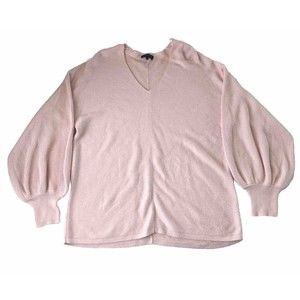 Introducing a lovely pink V-neck sweater from 1.STATE, perfect for travel and casual occasions. The sweater is made of a comfortable blend of viscose, cotton, and modal materials, and is easy to care for with hand washing. The ribbed design adds a touch of texture to the long sleeves and pullover style, making it a versatile addition to any wardrobe. This sweater is available in a size small and is suitable for regular wear.