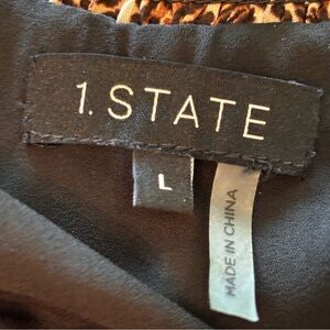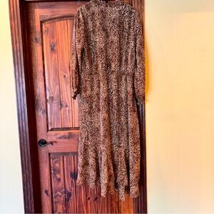 1 State Animal Print Hi-Low Maxi Dress, Large, V-Neck, Smocked Ruffle Neckline, Smocking at Waist and Cuffs, Ruffled Tiered Hi-Low Hem, 100%Polyester, Machine Wash. In Great Pre-Owned Condition, Approximate Measurements in Pictures.