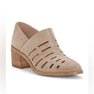 Mushroom, neutral, bootie, shoetie, shootie, leather, suede, grey, tan, stacked heel, greige, slits, cut out