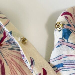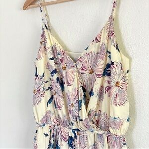 1. State Aster Garden Floral Cami Strap Surplice Drape Front Romper in Sugarcane, Size Small.