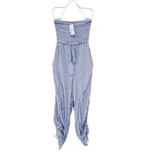 1 State Beach Striped Jumpsuit Sleeveless Romper Swim Cover Up Leg Slit Size L