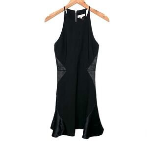 1 State Black Satin Inset Fit & Flare Dress Size XS