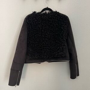 1. State Black, Teddy Jacket Fuzzy Texture, Medium, 2 in 1 Convertible Coat