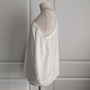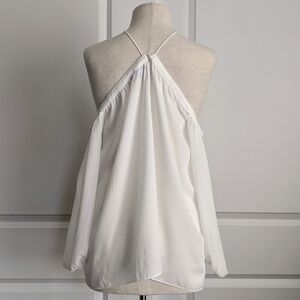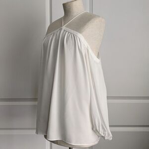 1. State Blouse High Neck Chiffon Sheer Blouson Sleeves Off Shoulder White M NWT