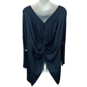 Blouse Round Neck Twist Wrap V Back by 1. State Oversized in Navy Blue with Asymmetrical Shark Bite Hem Women Size Medium