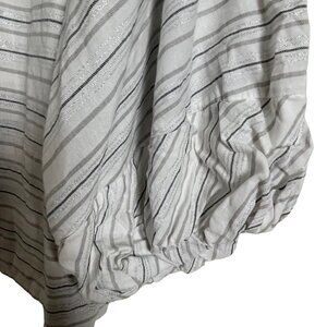 1. State Boat Neck Ivory Black Silver Striped Balloon Sleeve Size M Top