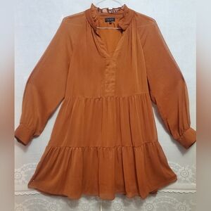 1. State Burnt Orange Long Sleeve Chiffon Mock Neck Dress Size XL