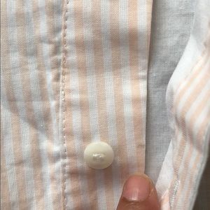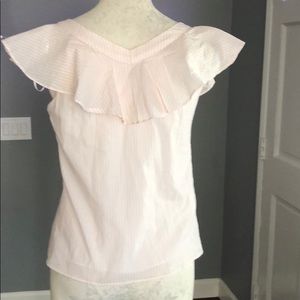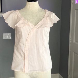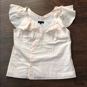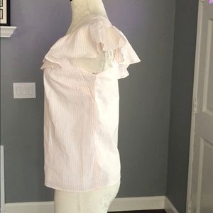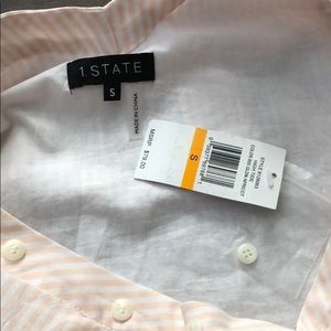 NWT! 1. State top size small. Material: 100% Cotton. Asymmetric front button closure. Light peach and white stripes. Ruffle sleeves