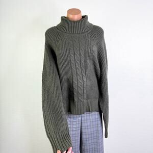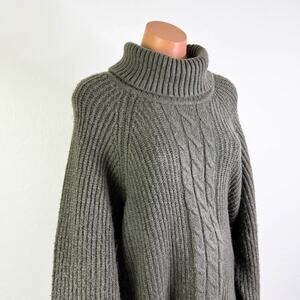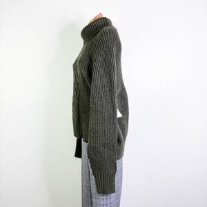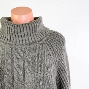 1 State Cable Knit Back Cutout Turtleneck Pullover Sweater Gray Green sz XL NWT