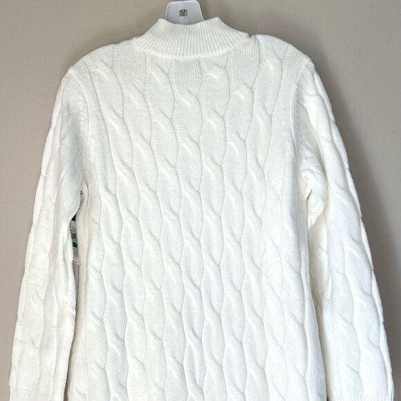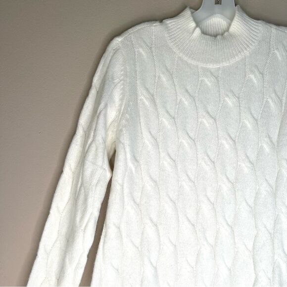 1. State Cable Knit Ivory Mock Neck Midi Long Sleeve Knit Sweater Dress - L