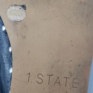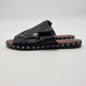 1. State Cadwyn women US 6 black leather silver studded zipped upper slides