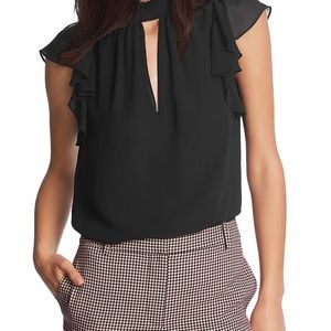 1 State Chiffon Blouse with Flutter Sleeves and Keyhole Front Size Small Black
