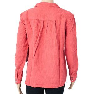 1 State coral color, crinkled super soft gauze, long sleeve blouse. Easy slip over your head. Roomy but not oversized. V-neckline, collar. Button cuffs. Straight hem. Versital. Functional breast pocket. Perfect for spring or a nice cool summer evening. Brand new with tags.